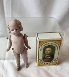Dukkehus-dukke, Porcelænsdukke, Antik, retro, vintage, gammel porcelænsdukke til dukkehuset h 8,5 cm med brugsspor sælges 575,-. Fragten aftales individuelt!