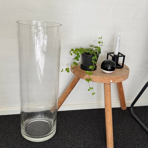 Glas, Vase, Meget høj vase i flot fejlfrit snoet glas h 45cm ø foroven 14 cm velegnet til gulvvase! Fragten aftales individuelt!