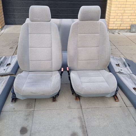 Billederne taler for sig selv. De trænger til en kærlig hånd. Det ene forsæde er med sædevarme og det andet forsæde er uden. Og så mangler der også et selebeslag på den ene side, på en af stolene.