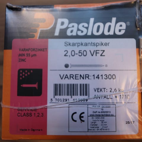 3,1x98 Paslode søm, En god halv kasse varmeforzinket 3,1x98 søm fra Paslode.(595 søm)