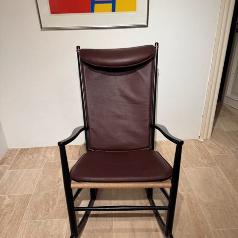Wegner, J16, Hyndesæt til Wegner Gyngestol J16, Flot velholdt hyndesæt - 3 dele i sort anilin læder - fra røgfrit hjem.