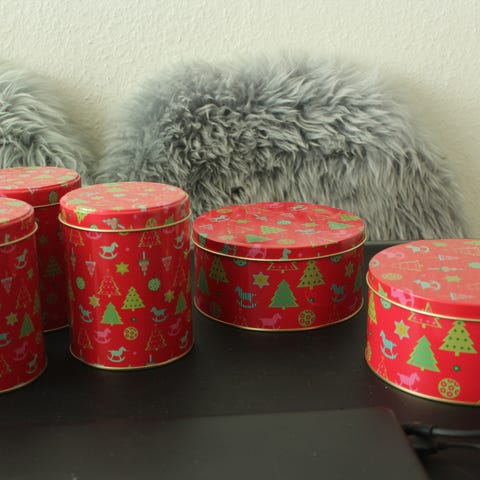 2 stks nye/ubrugte juledåser i rød og grøn bundfarve med billeder af skønne bamse motiver som både bager og har gaver med