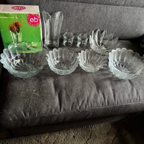 Sæt med dekorations vase og fyrfads stage i glas.