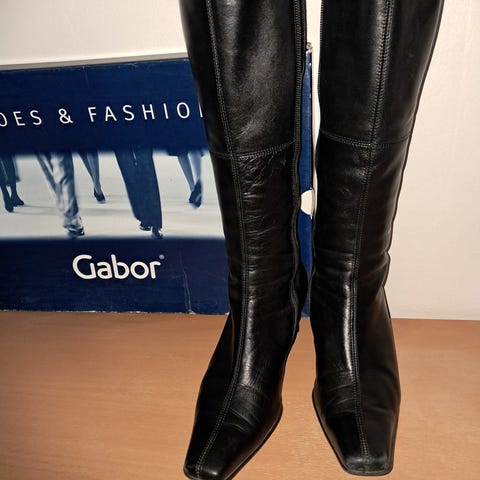 Støvler, str. 40, Gabor, Sort, Læder, Næsten som ny, Flotte lange støvler, brugt 3 gange. Hæl 6 cm