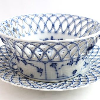 Musselmalet helblonde Frugskål med fad, Royal Copenhagen