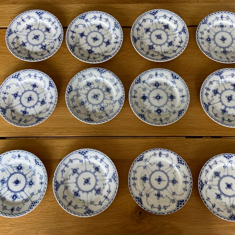 Porcelæn, B&G dybetallerkner, B&G, 3 dybetallerkner alle malet af medarbejder “nr 36” fra B&G Ø 21. De er alle første sortering men med skår, se foto. Der er ikke revner eller misfarvninger. Prisen er for alle 3 stk.