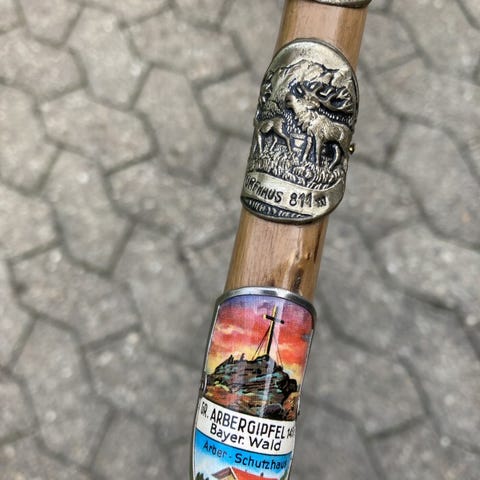 Andre samleobjekter, Stok, Ældre træ Vandrestok med udskåret hovede af jagthund, L ca 93 cm ø ca 2 cm, den er mere egnet til pynt end til brug! Er limet se foto 3. sælges kr 275,-. Fragten aftales individuelt!