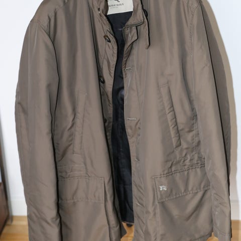Der står ikke størrelse i. Personen på billederne er en kvinde der normalt bruger str S. Jakken er ret oversize til hende. Gætter på det er en str S eller M herre