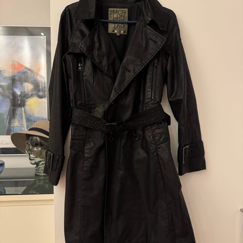 Trenchcoat, str. 34, PBO, Sort, God men brugt, Stroppen du hænger den op med er gået i stykker