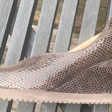 Andre damesko, Rive Gauche made in Italy, et par Leopard plettet, skind, ubrugte, vintage str 40 - et par sorte også str 40, lynlås i siden. Og et par brun/beige str 38,5. Alle købt forkert størrelse og siden gemt og glemt i flytning. Fantastisk mærke - vejer næsten ingenting - Alle tre par som nye - ubrugte. Rester af str mærker i sålene.