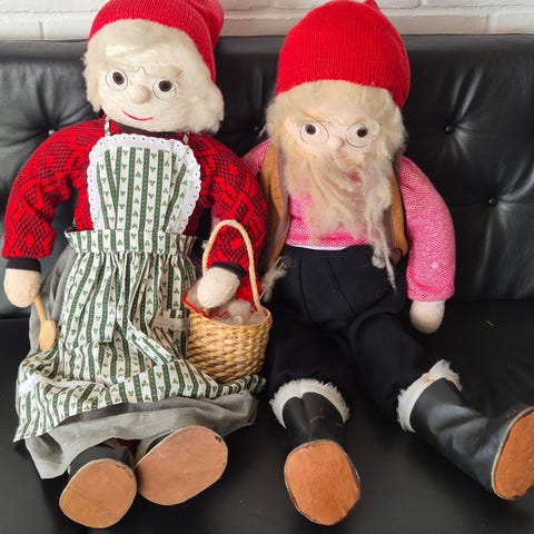 Nisser, 2 fine nyere nisser med bøjelige arme og ben i flot tøj og træsko, h ca 42 cm sælges samlet. Fragten aftales individuelt!