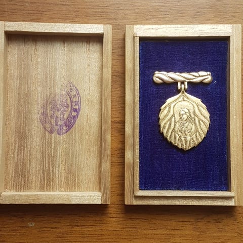 Medalje, kinesisk medalje i æske, "i have climbed the big wall" fra 70'erne i flot silkebetrukket æske 8x8 cm. (775)