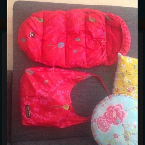 Kørepose, Sovepose Kørepose og pusletaske Rød med fugle, Sovepose Kørepose og pusletaske