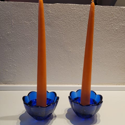 Glas, Lysestager, J.G.Durant France, 2 flotte grønne lysestager fra Frankrig h 26 og 22 cm sælges samlet 175,-kr. fragten aftales individuelt!