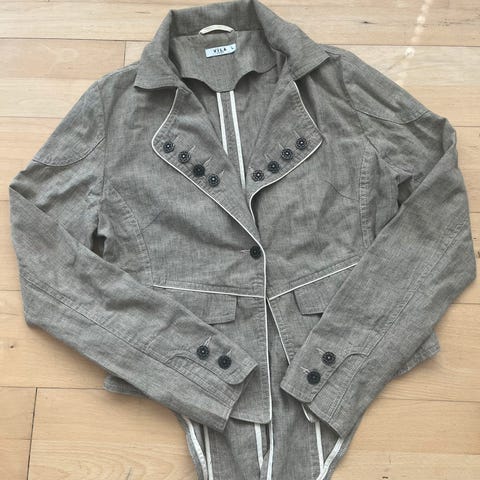 Vila blazer / habitjakke brun med hvid mønster i str. L. den lukkes med en knappe.