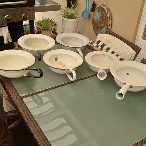 2 skønne charmerende antikke/gamle hvide emalje bækkener - kan bruges super dekorativt