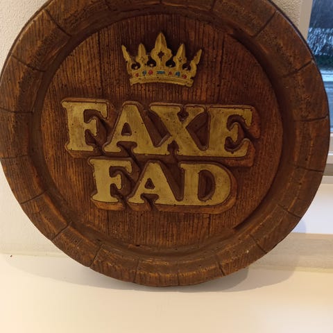 Øl, Ikke foldet øldåse. Kan bruges som metalskilt, ølreklame for Faxe øl "Faxe Fad 45", ca. A5 størrelse. Er fra 70'erne.