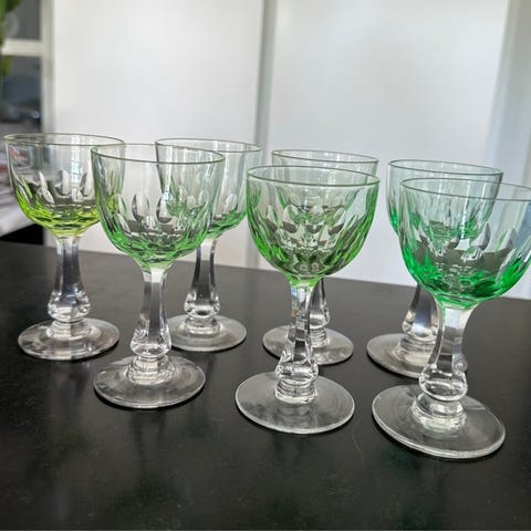 Hvidvin, Derby Holmegaard/ Kastrup, Holmegaard/ Kastrup Hvidvin Derby med grøn kumme h 12,5 cm ø 6,5 cm. Der er 26 stk i varierende grøn farve kr 100,- pr stk. fragten aftales individuelt!