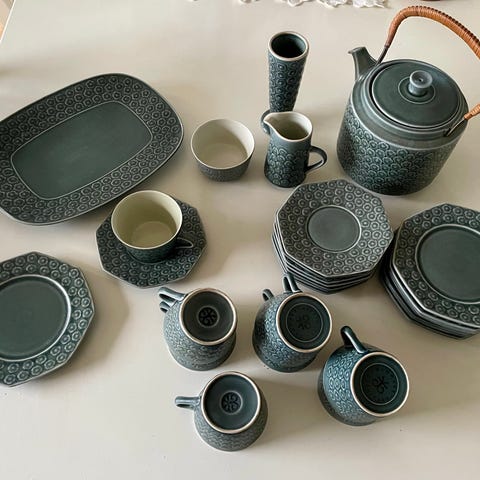 Stentøj, Salt og peber og sennep, Kronjyden, Azur Nissen Kronjyden B&G Quistgaard Stoneware 551 ubrugt Mustard jar with lid 10.5 cm Mustard wooden spoon, salt og peber sæt med original prop. Alle dele i fin stand sælges samlet 825,-kr. fragten aftales individuelt!