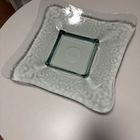 Glas fad, Flot glasfad i fine faver. Måler: bredde 40cm og højde 7,5cm
