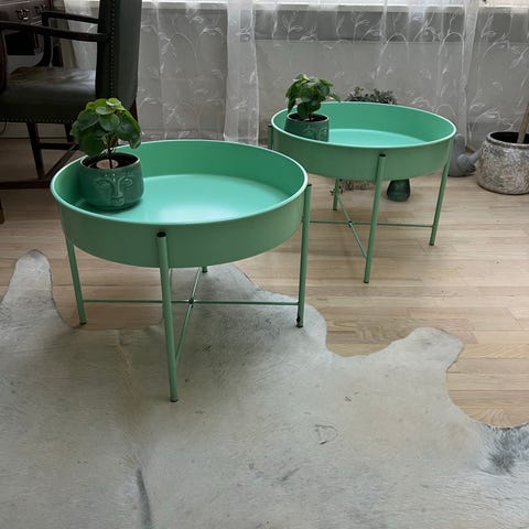Sidebord, b: 30 l: 50 h: 54, To sideborde / sofaborde sælges pga flytning. Sort træfiberplade (alm. brugsspor) med ben i stål. 300 kr for begge borde eller 175 kr pr stk.