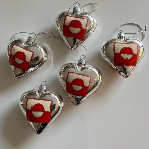 Julekugler, 3 flotte sjældne glas ophæng til juletræet! Den grønne er L 8 cm, hjertet er L 9 cm kr og gaven er fra Island 2009 3,5x3,5 cm kr 125,- pr stk. Fragten aftales individuelt!