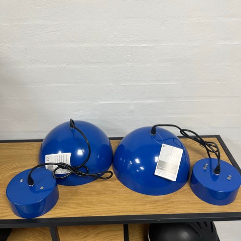 Pendel, Sona, 2 stk Sona pendant pendel med blå glasskærm og sort tekstil-ledning
