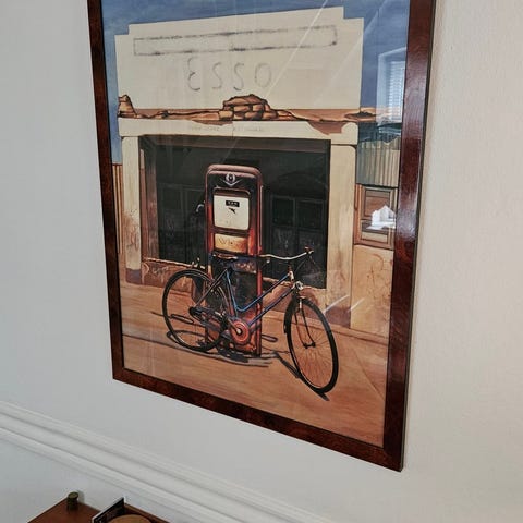 Plakat i træramme, b: 75 h: 55, Plakat i træramme, motiv: Tank station