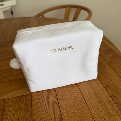 Makeup pung, Clarins og Body Shop, 5 små "kosmetik" tasker / punge (3 er del af gaveæsker med Clarins produkter, den grønne er fra Body Shop og den grå er fra Biotherm). Aldrig brugt. Forskellige størrelser og materialer.