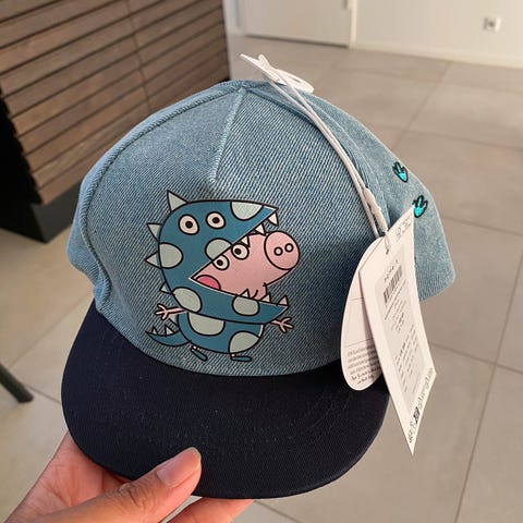 Kasket, Med gurli gris motiv, Peppa pig, str. 104, 54 cm, kan justeres i bag med Velcro strop
