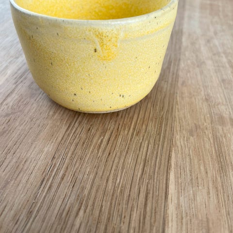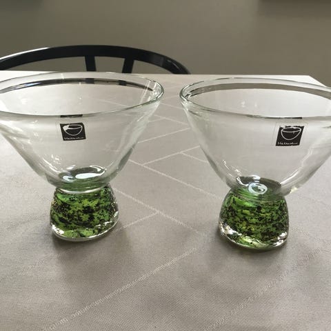 De små måler 12,5 cm i diameter og 7 cm i højden. Pris 150,-/stk.