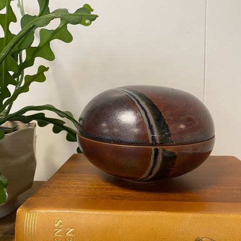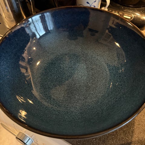 Den store måler 18,5 cm i diameter og 10 cm i højden. Pris 350,-