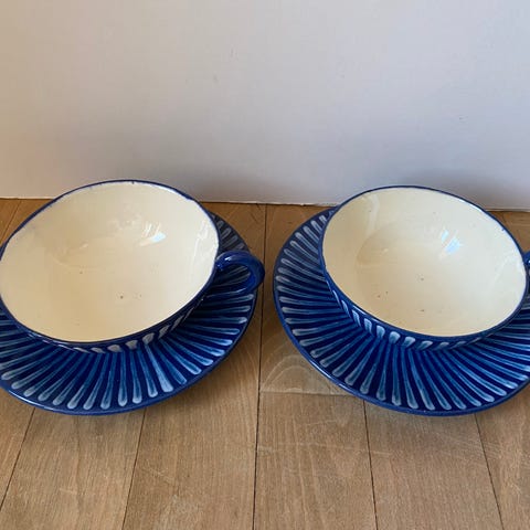 Keramik, Tallerken, Lillemor Clement og Inger Folmer, Et smørnæb, gammel lille skål med hank og diverse afslag samt kagefad med reparation i kanten ø 26 cm sælges samlet. Fragten aftales individuelt