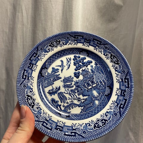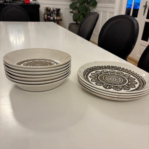 Stentøj, Tallerkner, Churchill Cottage, 6 retro frokosttallerkner Churchill Cottage England .