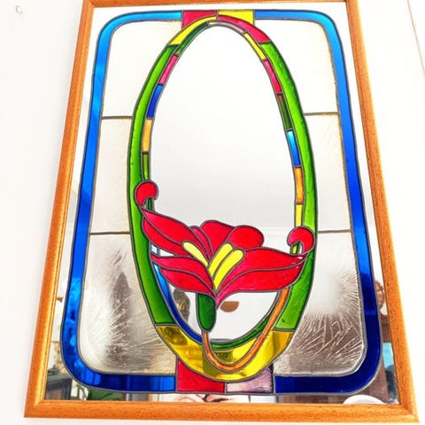 To smukke Lust-vægspejle fra Normann Copenhagen, designet af Simon Legald og en del af den stemningsfulde Tivoli-kollektion. Spejlene har farvet glas i ædelstensnuancer, tænkt som en dekorativ skulpturel vægdekoration inspireret af blyindfattede vinduer.