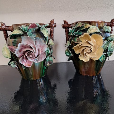 To skåle med blomster og figurer