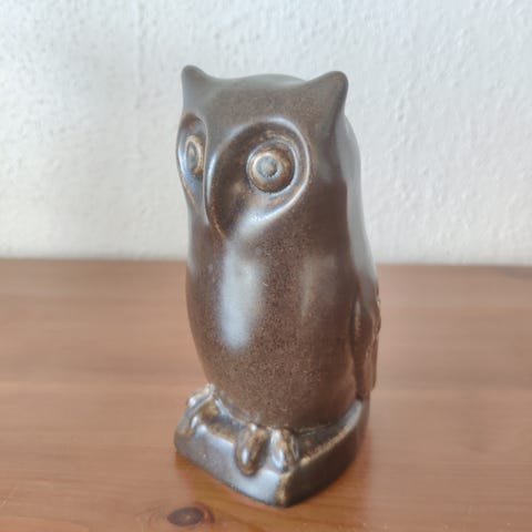 Gammel sparebøsse, en ugle med teksten