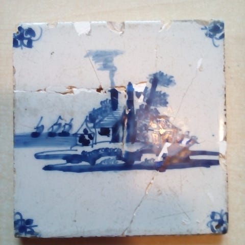 På bagsiden påklistret beskrivelse af fliserne, samt datering af denne til 1910 -1930.