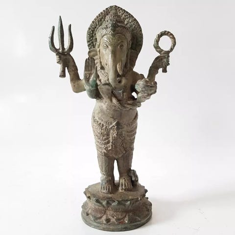 Antik Ganesha, Antik Massiv hindu Ganesha figur. Ganesh, (også stavet Ganesha, Ganesa og kendt som Ganapati), søn af Shiva og Parvati, er Lykkens Herre, som giver velstand, formue og succes. Han er begyndelsens Herre og fjerner forhindringer af både materiel og åndelig art. Højde 6,5 cm. Pris 400 kr. Se også mine andre annoncer. Hv123