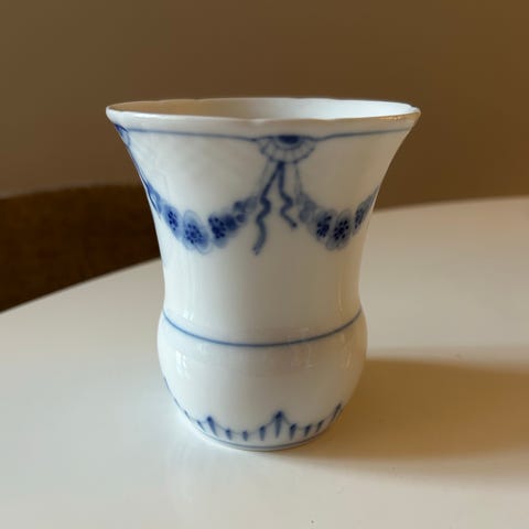 Vasen måler 7 cm i højden og 9 cm i diameter i toppen.