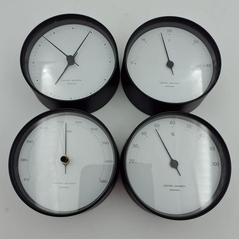SØGES/ KØBES. Georg Jensen Koppel Vejrstation i messing med hvid urskove.