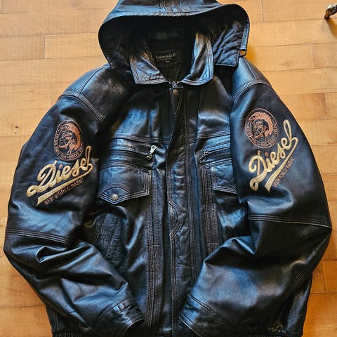 Læderfrakke, str. XL, Timberland, Mørkebrun, Læder, God men brugt, Velholdt læder frakke med lommer og lyst foer. Både med lynlås og knapper