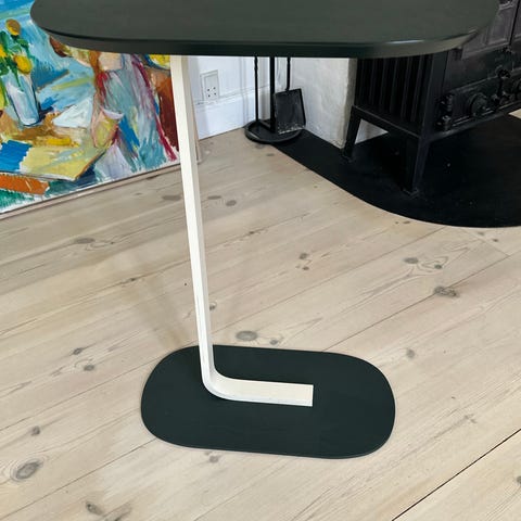 Muuto Relate sidebord i offwhite pulverlakeret stål og med linoleum i samme farve på top. H 60,5 cm, l 56,2 cm, d 34 cm. Har kun stået til pynt og har derfor ingen brugsspor, men kun en lille fabrikationsfejl på kanten, som prisen er sat efter. Opr. udsalgspris 3.495 kr.