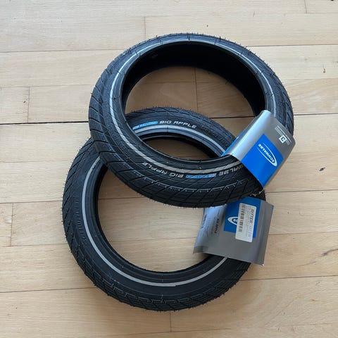 Schwalbe Kid Plus yderdæk til barnevogn - punktérfri. Der sælges 4 helt nye dæk. Nypris 499kr. Mængderabat gives (se øvrige annoncer) Specifikationer: Tommer størrelse: 12 x 1,75 ETRTO-størrelse: 47-203 Dæktype: wire Type cykel: barnevogn Refleksion: nej Farve: sort Materiale: gummi EPI: 50 Dæktryk: 2,00 - 4,50 Bar (30-65 psi) Vægt: 350 gram
