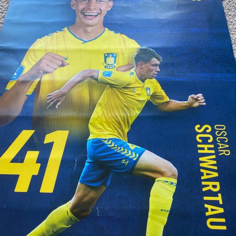 Plakater, BANNER - LÆRRED - BRØNDBY, STOR GUL BLÅ BRØNDBY REKLAME KAMPSPONSOR