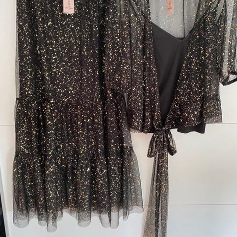 Ubrugt, Kan passes af str. S,M og lille L, da kjolen er slå om og kan reguleres.