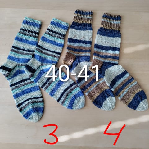 Strømper, Uld - hjemmestrikkede, str. 36/37, Ubrugt, Nye. Alle par er strikket i strømpegarn med uld (75%) og kan maskinvaskes på uldprogram. Passer str 36 - 37. Det er garnet (på de fleste par), der selv skifter farve. Prisen er pr par. Se også gerne mine andre annoncer (bl.a også strømper i andre størrelser)
