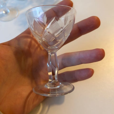 2 - 6 vintage snaps/ likørglas af klar krystal.