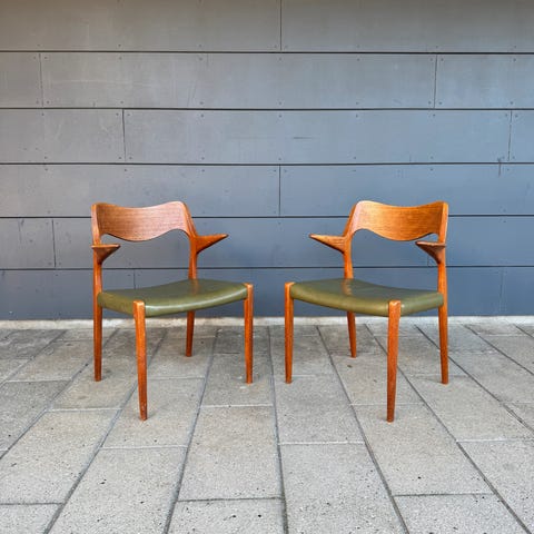 Niels O. Møller, stol, model 80, 4 super fine stole fra N.O.Møller med sort skind i mørk teak . Stolen er super fin pga de slanke ben, men med denne model er der super god siddekomfort.