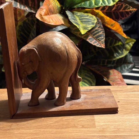 Andet, Bogstøtte, Træ massivt, Bogstøtter i massivt håndskåret træ med elefant